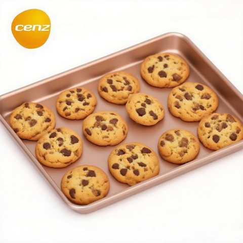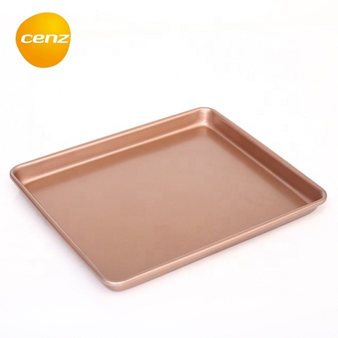 Bandeja para hornear de acero al carbono antiadherente de fábrica al por mayor, bandeja plana para hornear galletas, resistente a la corrosión, molde para pasteles de oro rosa